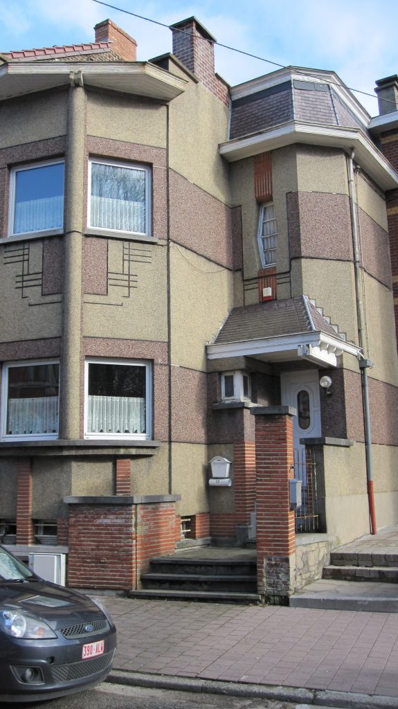 Suite au départ du couvent des Sœurs noires vers 1926, la propriété fut lotie en plusieurs propriétés. L’une de celles-ci, maison à façade classique a été enduite de « cimorné » dans les tons gris-bleus qui entourent portes et fenêtres et d’espèces de papillons de tons bruns qui forment une décoration originale.